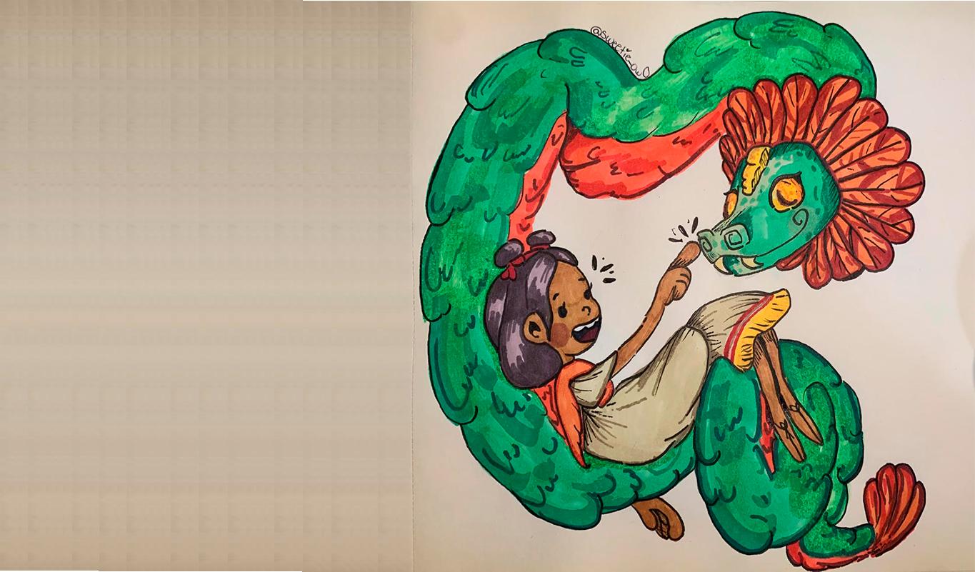 “Mexa” es una obra creada con marcadores de alcohol, habla de mi cercanía con las historias originarias que nunca me enseñaron de niña, pero que ahora de adulta estoy explorando.