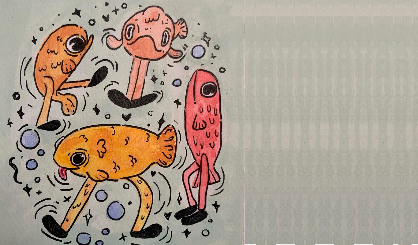 Este proyecto viene de mi amor por la vida marina y su especial manera de movimiento, hay peces en el mar que se mueven casi como si estuvieran bailando, y no hubo mejor manera de representarlo que la tinta china y la acurela.